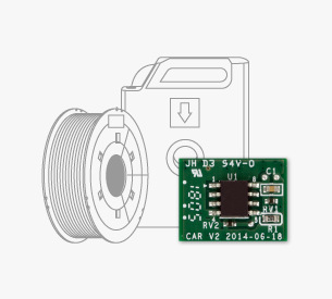 Značka nasadila čip 1. generace, jenž je připevněn ke spodní části kazety s vláknem. Spolupracuje se čtečkou čipů, jež následně čte data pro 3D tiskárnu. Následně inteligentně přizpůsobí profil materiálu pro bezproblémový tisk, stejně jako vás díky tomu bude informovat o množství zbývajícího materiálu pro tisk.