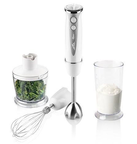 ponorný mixér • příkon 400 W • 5 rychlostí • plynulá regulace • TURBO tlačítko • ergonomický tvar • bohaté příslušenství: tyčový mixér, šlehací nástavec, 500ml sekáček, srpovitý nerezový nůž, 600ml pracovní nádobka • protiskluzové nožky