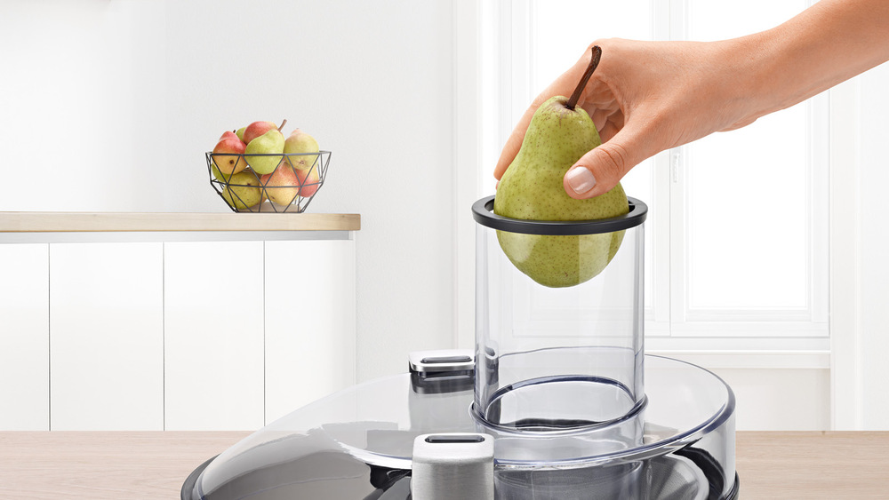 Výkonný odšťavňovač Bosch dokáže zpracovat celé ovoce bez nutnosti předkrájení. Vše snadno, rychle a čistě.