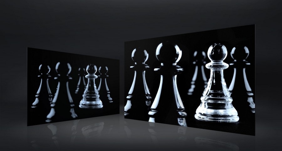 Micro Dimming Pro je technologie segmentového ztmavování obrazu, jež vám dovolí vychutnat si obraz s dynamicky hlubší černou a čistšími odstíny bílé. Technologie Micro Dimming Pro navíc dělí obraz na dvakrát tolik segmentů, než je běžné u standardní technologie Micro Dimming. Tím zprostředkovává ještě kvalitnější kontrast.