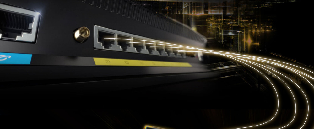 Na zadní straně routeru najdete osm gigabitových LAN portů. Ne všechna zařízení můžete připojit bezdrátově. Využijte také ethernetové kabely a připojte tiskárny, přehrávače, set-top boxy a další přístroje k routeru drátově, abyste jim zajistili rychlý a stabilní přístup k internetu.