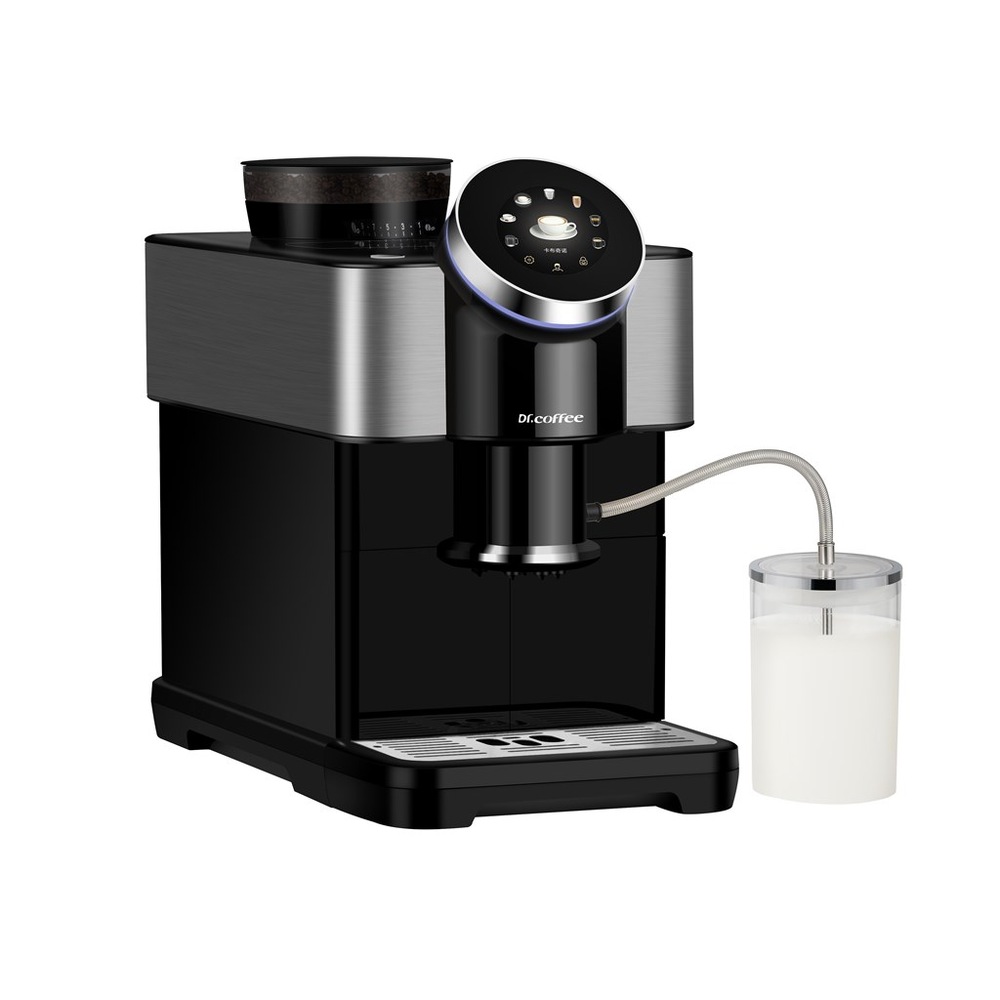 Dr.coffee s hrdostí představuje H2, plně automatický domácí kávovar, který přináší profesionální baristické zkušenosti přímo do vašeho domova. Tento inovativní přístroj kombinuje špičkovou technologii s elegantním designem, aby vám umožnil vytvářet dokonalé kávové nápoje s minimálním úsilím, a to přímo v pohodlí vašeho domova. H2 se pyšní řadou pokročilých funkcí, včetně automatického napěnění mléka a samočisticího systému. S nádrží na vodu o objemu 1,5 l a zásobníkem na 200 g zrnkové kávy je připraven uspokojit i ty nejnáročnější kávové nadšence. Díky průhlednému zásobníku na zrna a kruhovému 4,0″ dotykovému displeji je obsluha nejen snadná, ale i vizuálně atraktivní.