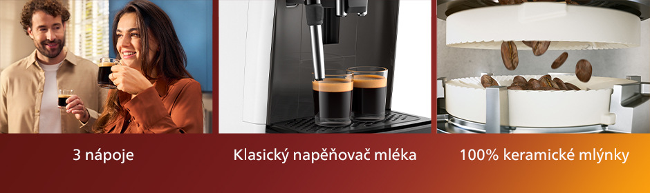 - Automatický kávovar připraví jedním stisknutím tlačítka 3 druhy nápojů