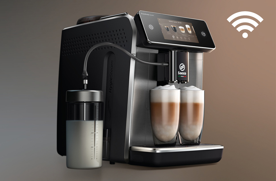 Automatický kávovar Saeco GranAroma Deluxe připravuje lahodné kávové nápoje za pomoci těch nejmodernějších technologií. Přístroj disponuje připojením k síti Wi-Fi. Software kávovaru se pravidelně aktualizuje, sbírá data o vašem způsobu používání přístroje a přizpůsobuje se mu. Dle potřeby také zobrazuje dostupnost příslušenství u místních prodejců pro maximálně snadné používání.