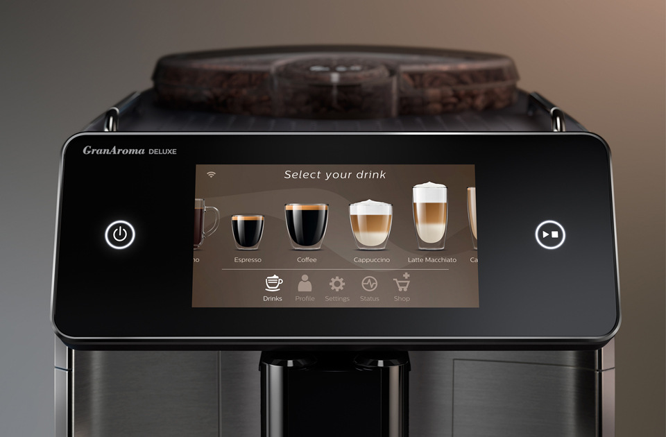Připravit si svůj oblíbený nápoj zvládne úplně každý: stačí vám jedno stisknutí tlačítka. Automatický kávovar Saeco GranAroma Deluxe má zabudovaný extra velký 5" dotykový displej, který je barevně podsvícený a jednotlivé druhy kávových nápojů jsou přehledně vyznačené pomocí ikon. Vaše oblíbená nastavení si můžete snadno uložit do paměti přístroje. Ovládání kávovaru je intuitivní, množství nápoje, poměr vody a mléka a další parametry k vaší naprosté spokojenosti jednoduše upravíte několika málo dotyky.