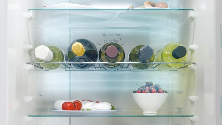 Total No Frost Circle + zajistí konstantní a rovnoměrnou teplotu a vlhkost na každé polici vaší lednice. Inovativní proudění vzduchu vycházející z postranních vývodů udržuje vaše potraviny déle čerstvé bez ohledu na to, kam je v lednici umístíte.