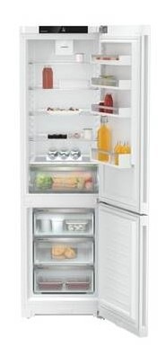 Chladnička v kombinaci s mrazničkou a technologií No Frost – to je Liebherr Pure CNd 5703. Dopřejte svým potravinám ideální prostředí pro dlouhotrvající čerstvost a trvanlivost. Beznámrazová technologie No Frost brání tvorbě ledu a komplikovanému odmrazování. Dokonale šetří energii i váš čas díky automatickému odmrazování. Lednička disponuje objemem 268 l a mraznička má objem 103 l. Vnitřní část je osvětlena stropním LED osvětlením a ovládání požadovaného nastavení je pomocí displeje. Pro dosažení ideální teploty a prostředí je chladnička vybavena dveřním alarmem, který vás při nedovřených dveřích upozorní akusticky i vizuálně.