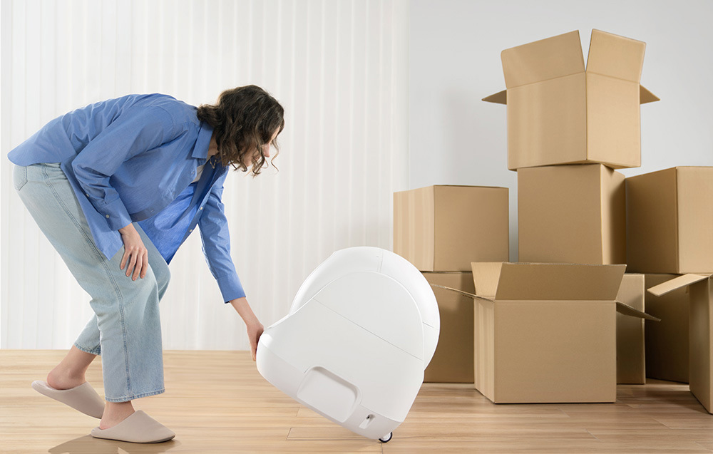 Minimalistické provedení a kompaktní design zajistí, že se zařízení hodí do každé místnosti. Na spodní straně se nachází dvě kolečka, která usnadní jeho přenášení.