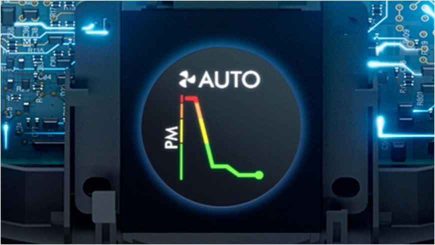 Přesná analýza a diagnostika ovzduší v místnosti je měřena pomocí integrovaných senzorů. Veškeré hodnoty jsou v reálném čase viditelné na displeji čističky.