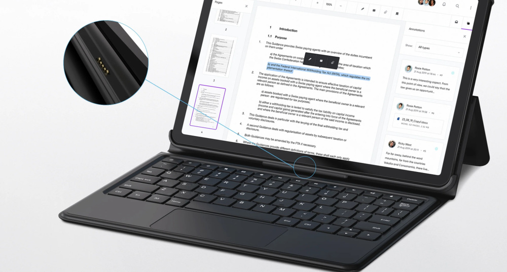 Díky dodávané klávesnici můžete v mžiku z tabletu vytvořit plnohodnotný pracovní nástroj a rychle vytvářet poznámky, psát e-maily či pohodlně editovat dokumenty jako na notebooku.