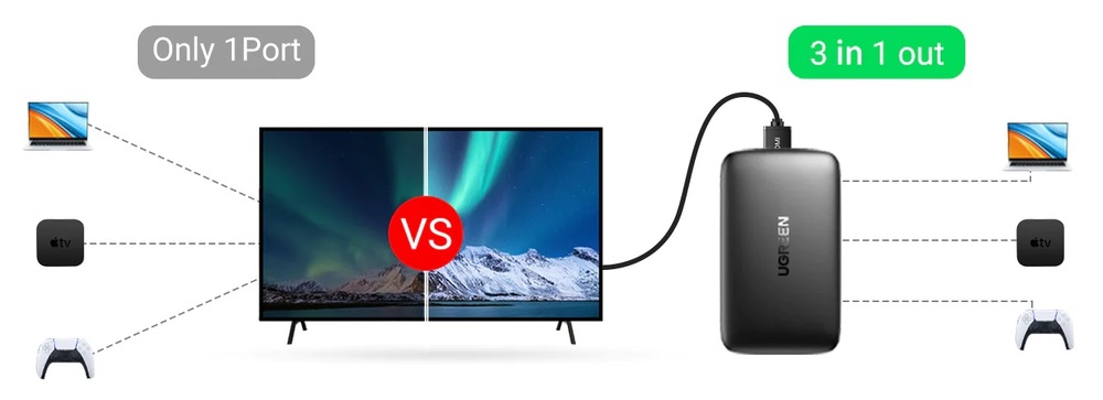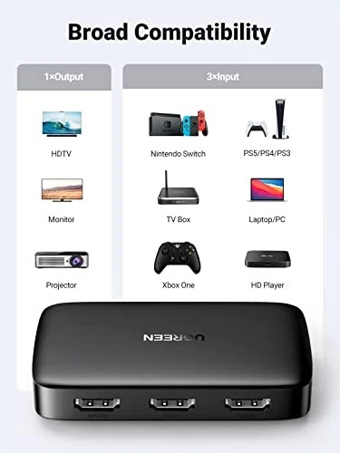 Ugreen HDMI Switch 3 IN 1 OUT HDMI Switcher Splitter