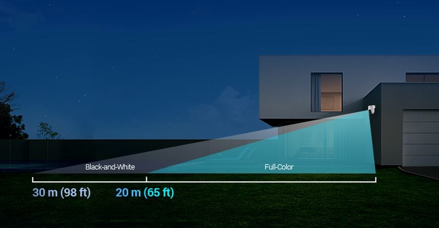 Perfektní přehled o dění ve snímané oblasti budete mít také v noci. Infračervené světlo i v černobílém záběru nočního prostředí zobrazí vše podstatné, ovšem k dispozici jsou také dvě silné diody. Ty dokáží plně osvítit snímaný prostor až do vzdálenosti 30 metrů a vykreslit plně barevný obraz pro přesnou identifikaci osob.