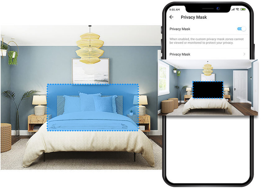 Mějte jistotu, že vám nikdo neuvidí do soukromí. Nastavte si zóny soukromí, které z obrazu vyčlení vámi zvolený prostor. Záznam v tomto místě se nikdy nikam neukládá, aby nehrozilo, že se k vašim citlivým údajům dostane někdo nepovolaný.