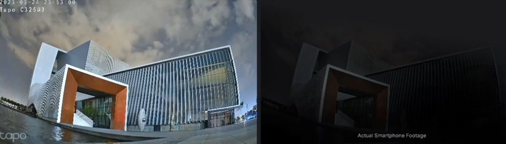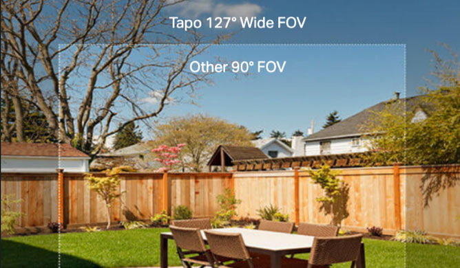 Díky širokoúhlému objektivu dokáže kamera zabrat prostor pod úhlem 127°. Lze ji tedy upevnit na stěnu nebo strop a mít přehled o všem, co se kolem budovy děje.