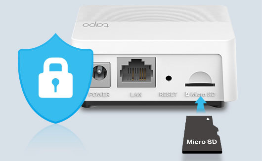 Nahraná videa lze ukládat na kartu microSD, jejíž slot najdete na rozbočovači. Paměťové karty podporuje až do velikosti 512 GB, abyste měli k dispozici dostatek místa pro dlouhé hodiny záznamu ve vysokém rozlišení. V případě zájmu si však můžete dokoupit také cloudové úložiště Tapo Care s neomezeným prostorem, kde budete mít k videu přístup kdykoliv a kdekoliv.