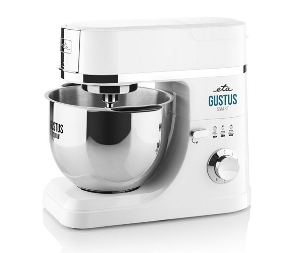 Rychlost otáček lze pohodlně ovládat pomocí otočného regulátoru. K dispozici je i funkce PULSE pro maximální rychlost. Nezbytnou součástí robota je velká nerezová mísa o objemu 5,5 l, která pojme až 2,5 kg těsta. Planetární systém míchání se postará o dokonalé zpracování surovin. Kuchyňský robot ETA Gustus IV Smart je při práci i velmi tichý, jeho hlučnost nepřekročí hranici 86 dB.
