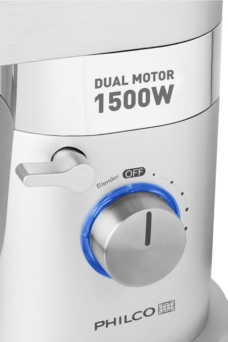 Kuchyňský robot Philco je vybaven unikátním systémem 2 motorů různých typů, jenž jsou využívány k jinému účelu. Díky tomu získává spolehlivý výkon a efektivní sílu pro zpracování i tuhých těst.