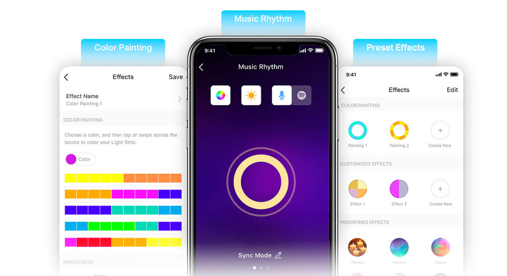 Spolu se světelným páskem dostanete k dispozici zdarma aplikaci do chytrého telefonu, která vám usnadní správu a nastavení osvětlení. Můžete si vybrat světelný odstín, nastavit hudební režim, intenzitu a dobu svícení, aktivovat hlasové asistenty, vybírat z efektů a mnoho dalšího.
