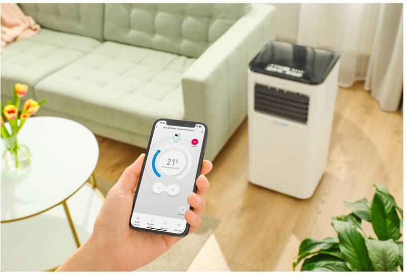 mobilní klimatizace • doporučeno pro prostor do 31 m² • max. výkon chlazení 8 000 Btu/h • energetická třída A • funkce chlazení, odvlhčování i ventilace • časovač • Wi-Fi • mobilní aplikace • dálkový ovladač