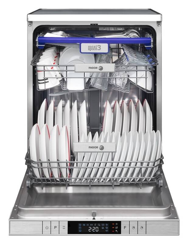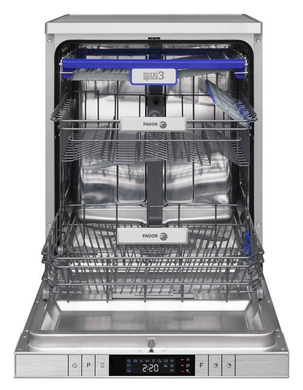 Vyzkoušejte nepostradatelnou pomocnici ve vaší kuchyni, myčku Fagor 3LVF-638ADX. Na jeden cyklus zvládne umýt až 14 sad nádobí a je vybavena třetí příborovou zásuvkou MaxiSpace 3. Ovládací panel je plně integrovaný a nabízí 9 programů s teplotním rozsahem 50–65 °C. Spotřebič má šířku 60 cm, je zařazen do energetické třídy D a dosahuje hlučnosti 44 dB. Během spuštěného mycího programu promítá myčka světelný paprsek Blue Dot na podlahu. Po ukončení cyklu se dvířka automaticky otevřou a akustický signál upozorní na konec mytí. V poslední fázi sušení funguje OpenDry, které zaručí absolutně suché nádobí. Vnitřní prostor je nerezový a vybaven vnitřním osvětlením. S funkcí SteamPower můžete zkusit sílu páry pro odstranění odolné špíny.