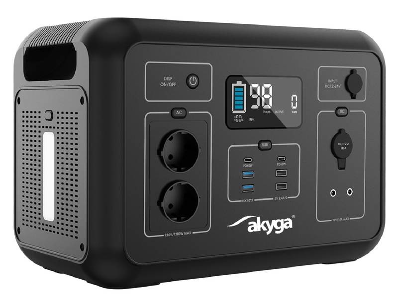 Tato nabíjecí stanice Akyga o kapacitě 1 132 Wh a výkonu 1 200 W se stane vaší oporou na cestách, kde dokáže utáhnout nejen přenosnou elektroniku, ale také větší spotřebiče, jako je televizor nebo lednička. Obsluhuje se intuitivně skrze LCD displej a také má jednu specialitku – na boku LED, které může posloužit jako nouzový zdroj světla.
