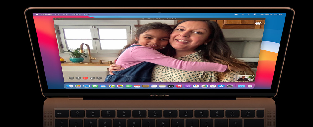 Procesor M1 umožňuje MacBooku naplno využít potenciál kamery FaceTime HD a nejnovějšího obrazového signálového procesoru pro videopřenosy nejvyšší kvality. A na stejně vysoké úrovni jsou i tři mikrofony ideální pro online konference i diktování.