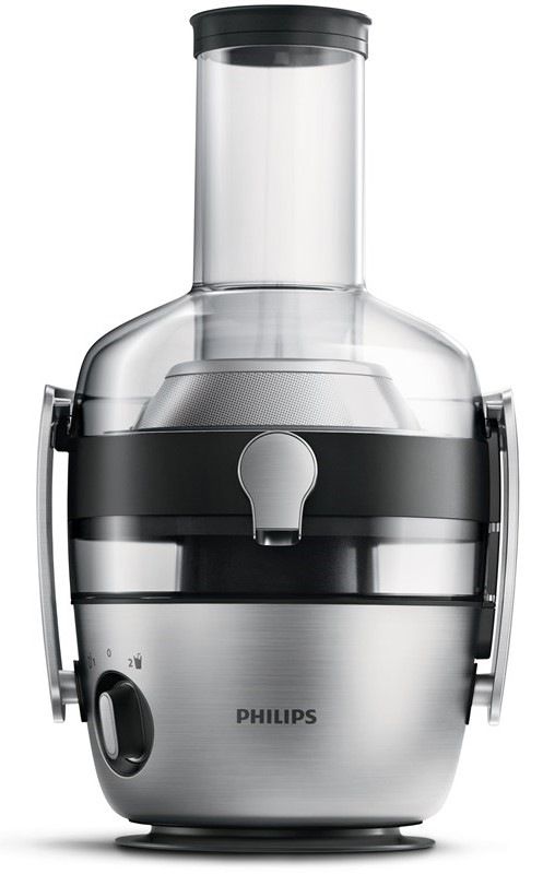 XXL trubice s rozměrem 80 mm dovoluje vkládat i větší kusy. Jediným pohybem aktivujete systém Drip Stop proti nechtěnému odkapávání. Technologie QuickClean zaručí maximální výtěžnost a pohodlné čištění. Funkce pročištění snadno odstraní dužinu uvnitř přístroje. Tichý motor nebude rušit denní klid. Veškeré odnímatelné části je možné vložit do myčky na nádobí. Součástí sady je kniha receptů.