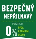 Revoluční nepřilnavý povrch pánve neobsahuje žádné zdraví škodlivé látky a během používání pánve je 100% bezpečný.