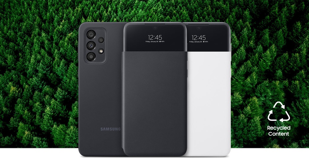 Odolné, ale také ekologické – takové je flipové pouzdro S View pro váš Galaxy A33 5G. K jeho výrobě byl částečně použitý recyklovaný materiál, a dokonce je kryt dodávaný v ekologickém balení, které je vyrobené z papíru.