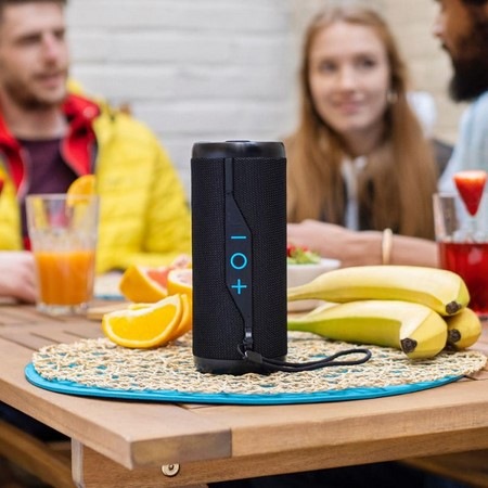 přenosný reproduktor • výkon 20 W • hudba přes Bluetooth • příjem hovorů • technologie True Wireless • odolnost IP67 • USB-C • FM rádio • čtečka paměťových karet • výdrž baterie až 20 hod.