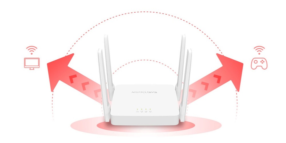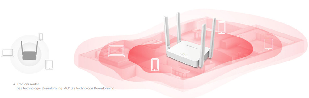 Na routeru se nachází čtyři externí antény se ziskem 5 dBi, které zajistí ještě lepší pokrytí celé domácnosti. Technologie Beamforming soustředí sílu signálu přímo směrem k připojeným zařízením a zvyšuje celkovou stabilitu sítě.