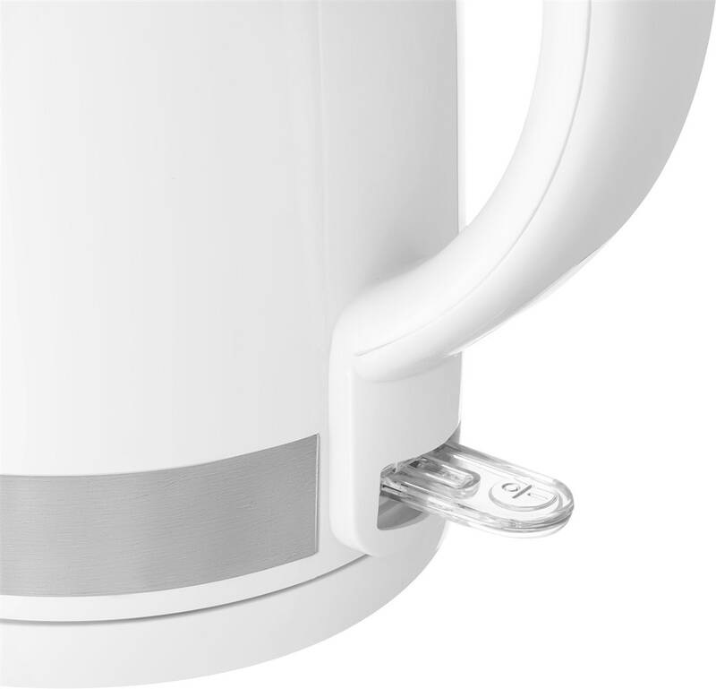 Rychlovarná konvice Sencor SWK 1748WH v elegantním bílém provedení krásně zapadne do každé kuchyně. Disponuje objemem 1,7 litrů a s příkonem 2 200 W přivede vodu k varu během krátké chvilky. Konvice je vyrobena z kvalitního plastu bez obsahu BPA, vyniká jednoduchým a pohodlným používáním. Nabízí automatické otevírání víka, pohodlně ji zvládnete naplnit jednou rukou. Bezpečné používání je úkolem pro konektor s trojnásobným bezpečnostním jištěním. Spotřebič se automaticky vypne po dokončení ohřevu, jakmile je konvice zvednuta z podstavce a obávat se nemusíte ani přehřátí přístroje bez vody.