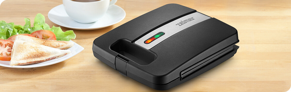 Sendvičovač Zelmer vyniká svým snadným použitím. S ním si můžete dopřát šťavnaté, 4 zapečené toasty rozdělené do 8 trojúhelníků.