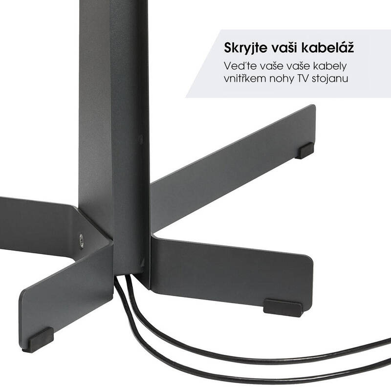 stojan pro TV • určeno pro úhlopříčku od 40 do 77" • nosnost až 50 kg • VESA uchycení 100 × 100 až 600 × 400 mm • ocelové provedení • systém skrytého vedení kabeláže • otočení stojanu o 90° • držák pro soundbar
