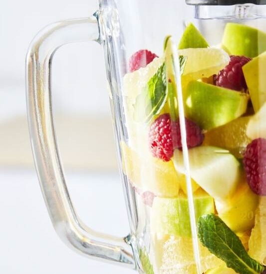 Průhledná mixovací nádoba s užitným objemem 1,25 l disponuje velkou rukojetí pro pohodlnou manipulaci. Po použití ji lze mýt v myčce, abyste se nemuseli zdržovat jejím čištěním.