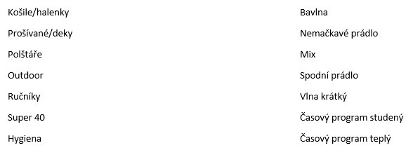 Prádlo se po usušení v bubnu ještě až dvě hodiny načechrává (lze kdykoliv během sušení přerušit a prádlo vyjmout).Tím se eliminuje jeho pomačkání.