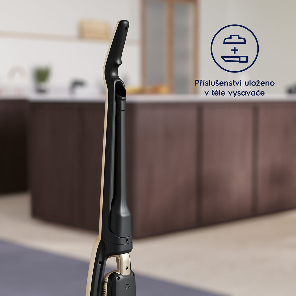 Přímo v těle vysavače budete mít vždy k dispozici prachový kartáč a štěrbinovou teleskopickou hubici, abyste lépe dosáhli do těžko dostupných míst.