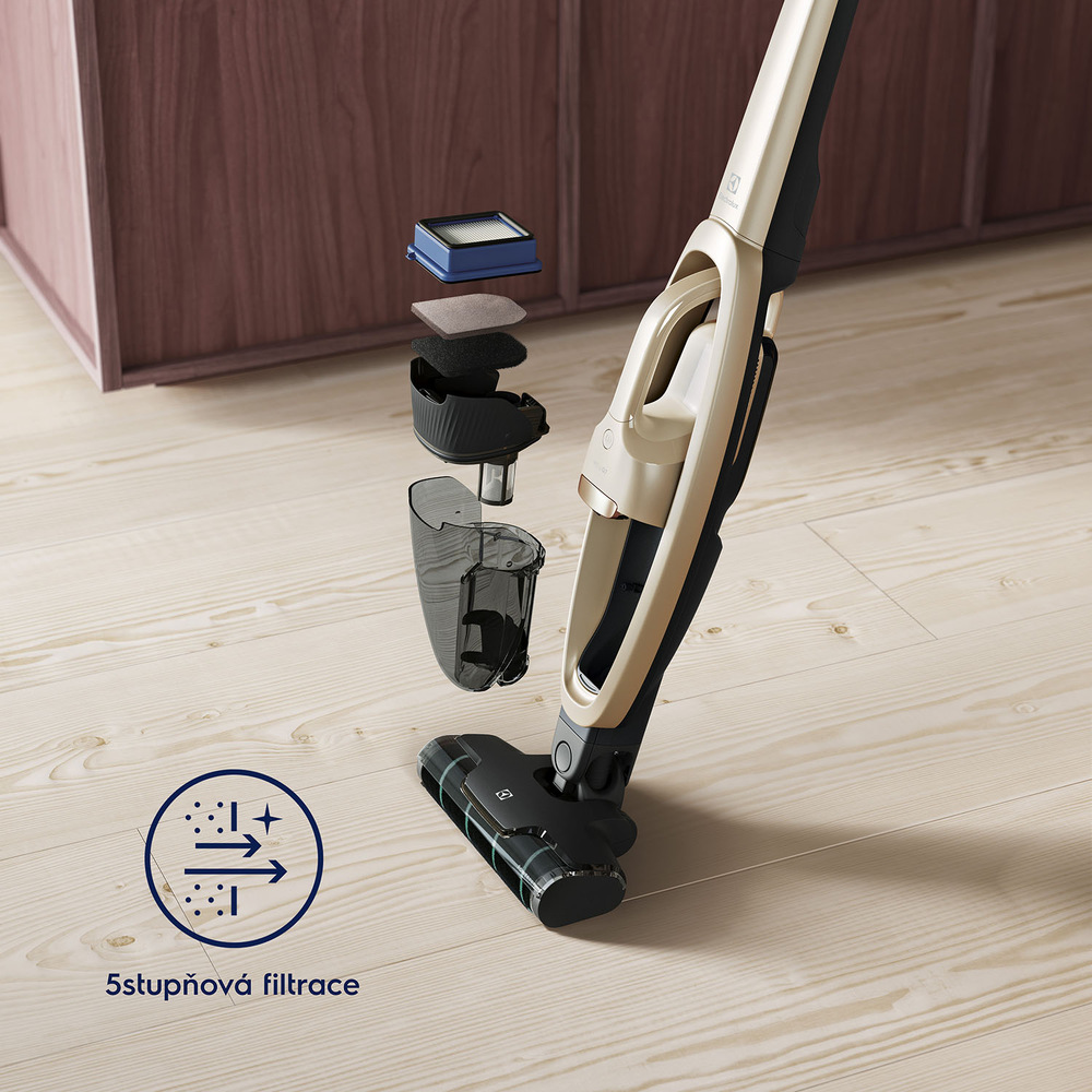 Pořiďte si výkonného pomocníka do vaší domácnosti. Tyčový vysavač Electrolux Well Q7 WQ71-P52SS skvěle poslouží při vysávání tvrdých podlah i koberců. Je vybaven praktickou hubicí s LED osvětlením a pracuje s 5stupňovým systém filtrace, díky kterému spolehlivě odstraňuje většinu mikročástic. Při svém provozu dosahuje hlučnosti 79 dB a součástí balení je užitečné příslušenství v podobě štěrbinové teleskopické hubice, prachového kartáče, rotačního kartáče s funkcí BRC a hubice Power Pro.
