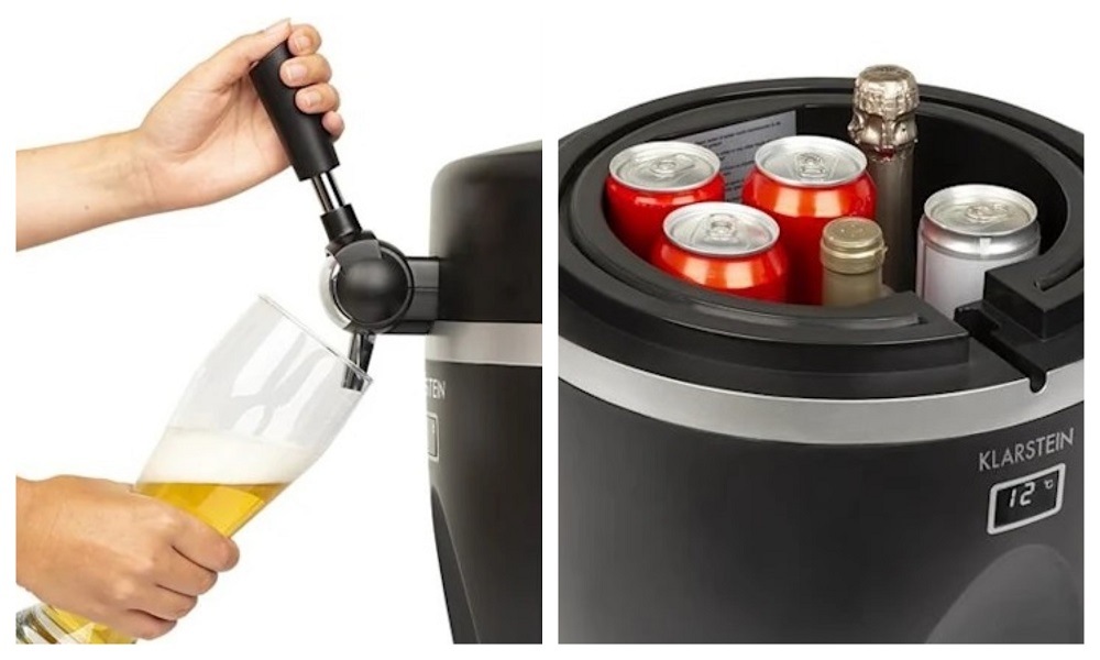 Když zrovna nemáte v chladicí nádrži žádný soudek, můžete výčepní zařízení Klarstein Tap2Go využít jako praktickou chladničku na nápoje. K dispozici zde máte prostor o objemu 13 litrů, kde si můžete vychladit lahvové pivo, plechovky s limonádou i třeba šampaňské.
