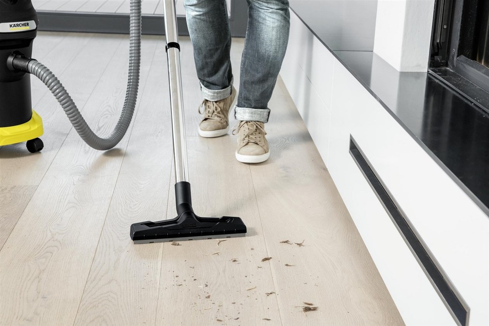 Vysavač Kärcher nabízí konstantní a dlouhotrvající sací výkon díky systému čištění zaneseného filtru pomocí stisku tlačítka.