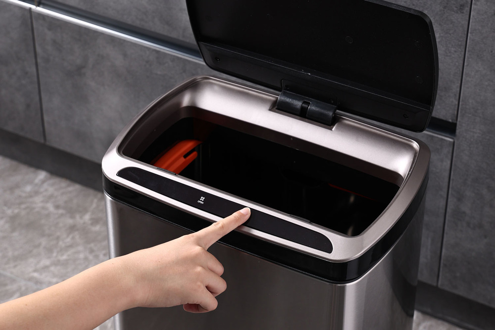 Odpadkový koš Helpmation je vybaven chytrým pohybovým IR senzorem. Víko se samo otevře po přiblížení ruky do blízkosti senzoru a zůstane otevřené, dokud ji ponecháte blízko. Po oddálení se víko samo uzavře do 5 vteřin. Odpočet času je viditelný na displeji.