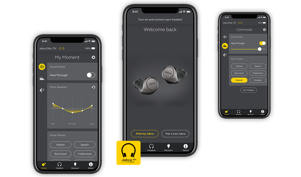 Nyní si můžete vychutnat vaši hudbu bez jakéhokoli vyrušování. Po aktualizaci mají nově sluchátka podporu ANC, neboli aktivní potlačení hluku, které odfiltruje nežádoucí hluk okolí. Pro prvotní nastavení použijte mobilní aplikaci Jabra Sound+ a pak už jen přepínejte režimy stisknutím tlačítka na sluchátkách.