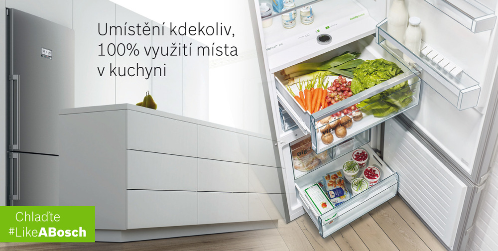 Chladničky Bosch mají dokonalé LED osvětlení, které neoslňuje a rovnoměrně osvítí celý vnitřní prostor chladničky. Police z bezpečnostního skla mají funkci plynulého vysouvání, které je velmi pohodlné a máte tak přehled o svých zásobách surovin. Chladnička Bosch má zdokonalenou technologii kondenzátoru a můžete ji přisunout přímo ke zdi nebo bočnímu nábytku. Pokud odjedete na dovolenou, chladničku přepněte do prázdninového HolidayMode a šetřete energii i potraviny v chladničce. Chladničku jde přepnout i do Eco modu. Pro rodiny s dětmi je důležitá i dětská pojistka.