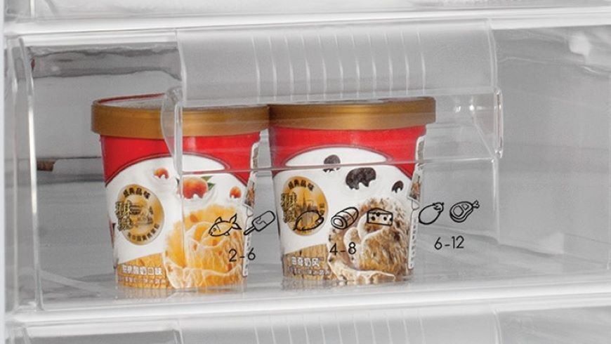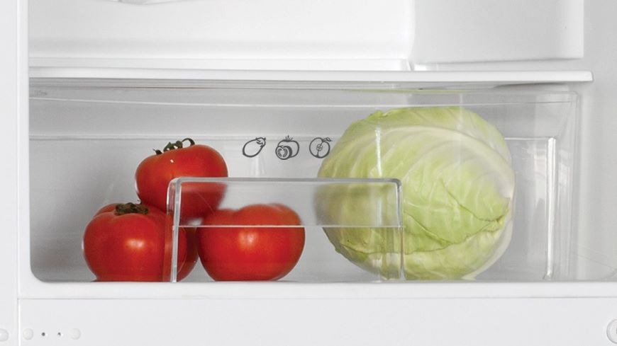 Průhledná a ergonomicky navržená zásuvka poskytuje ideální prostor pro skladování ovoce a zeleniny. Tato zásuvka nejenže prodlužuje čerstvost potravin, ale také předchází zbytečnému plýtvání. Její použití je velmi snadné, pohodlné a bez hluku, což přispívá k efektivnímu a tichému uskladňování potravin.