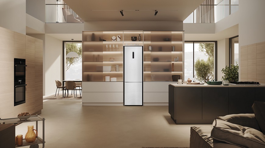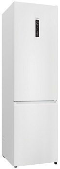 beznámrazová chladnička s mrazákem • výška 205 cm • objem chladničky 289 l / mrazničky 120 l • energetická třída A • dTest • 20 let záruka na kompresor • technologie Air Surround Total No Frost – rovnoměrné chlazení • zásuvka Humidity Zone – optimální vlhkost • zásuvka My Zone – nastavení teploty • Wi-Fi, komunikace s mobilem, chytrá diagnostika • externí dotykový displej • LED osvětlení • možnost změny směru otevírání dveří • hlučnost 35 dB • V × Š × H: 205 × 59,5 × 66,7 cm