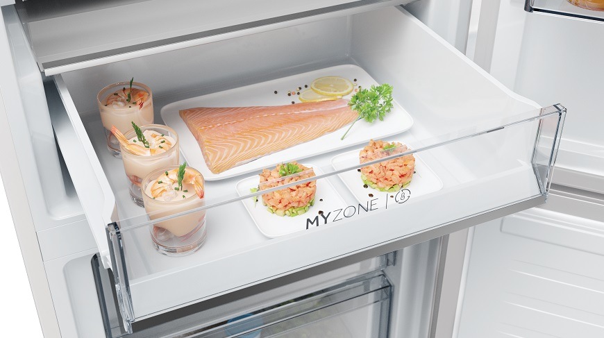 S přidanou funkcí My Zone můžete regulovat teplotu v zásuvce. Zásuvka je ideální pro maso, sýry, ryby nebo potraviny vyžadující individuální potřebu uskladnění. My Zone může nastavit v rozmezí od 0 do +5 °C.