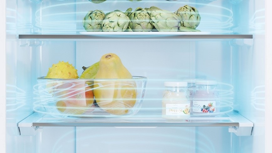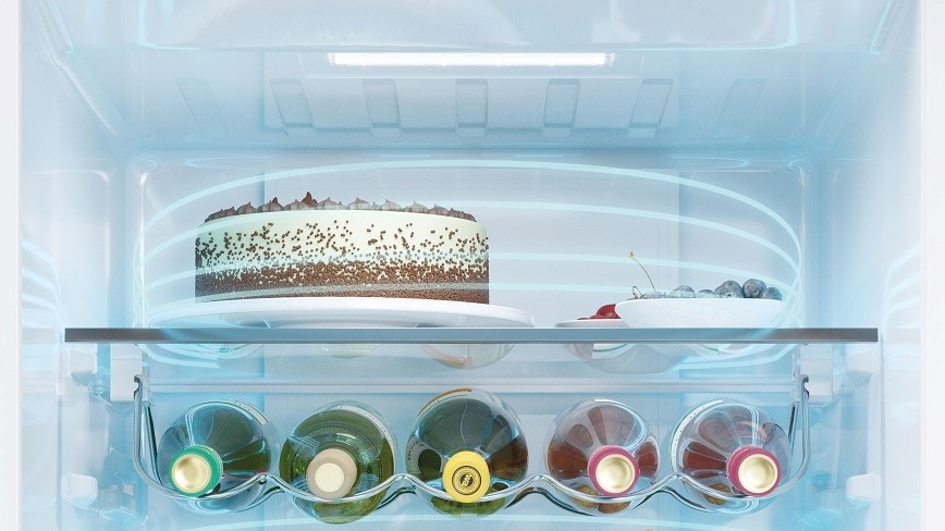 Systém Air Surround se stará o perfektní cirkulaci vzduchu v chladničce prostřednictvím ventilátoru, jenž studený vzduch distribuuje do celého prostoru. Pro potraviny, které vydrží déle čerstvé a plné vitamínů.
