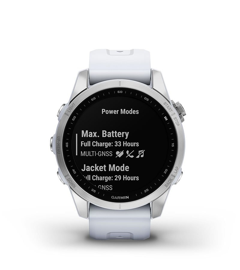 Tento model má integrovanou dobíjecí baterii se standardní výdrž až 37 dní díky speciálnímu solárnímu sklíčku! V režimu s neustále aktivovanou GPS je to 122 hodin, naopak režim úspory znamená prodloužení výdrže až na 1+ rok!