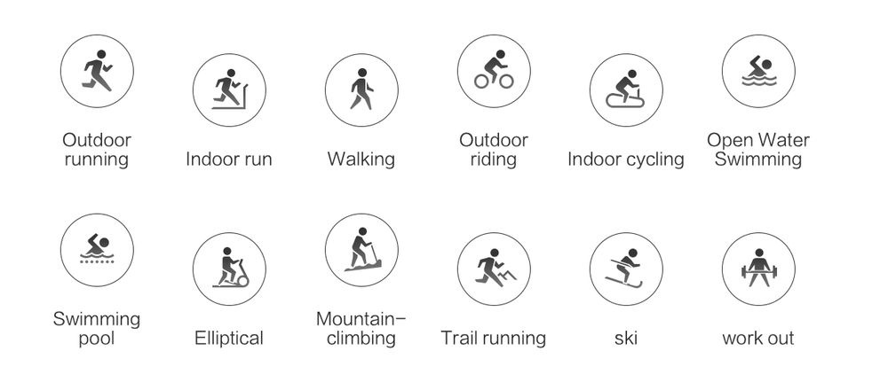 Vyberte si z bohaté nabídky dvanácti sportovních režimů, abyste měřili svou aktivitu ještě přesněji a podrobněji. Na výběr máte běhání venku/uvnitř, chůzi, cyklistiku venku/uvnitř, plavání v bazénu či otevřené vodě, eliptikal, horolezectví, běhání na dráze, lyžování a posilování.