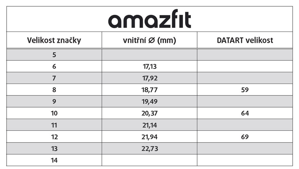 Podívejte se na tabulku velikostí a vyberte tu správnou. Velikostní čísla smart prstenů se napříč značkami liší, v naší přehledné tabulce najdete vždy číslo prstenu a jeho skutečný vnitřní průměr, tedy průměr, který by měl být o trochu větší než váš prst.